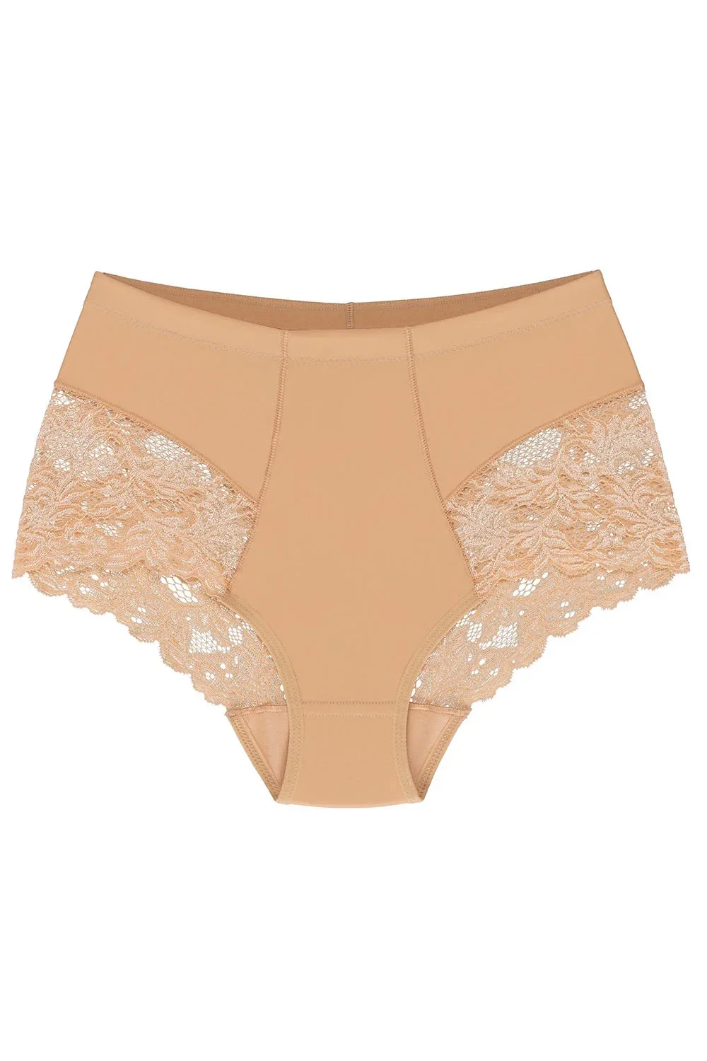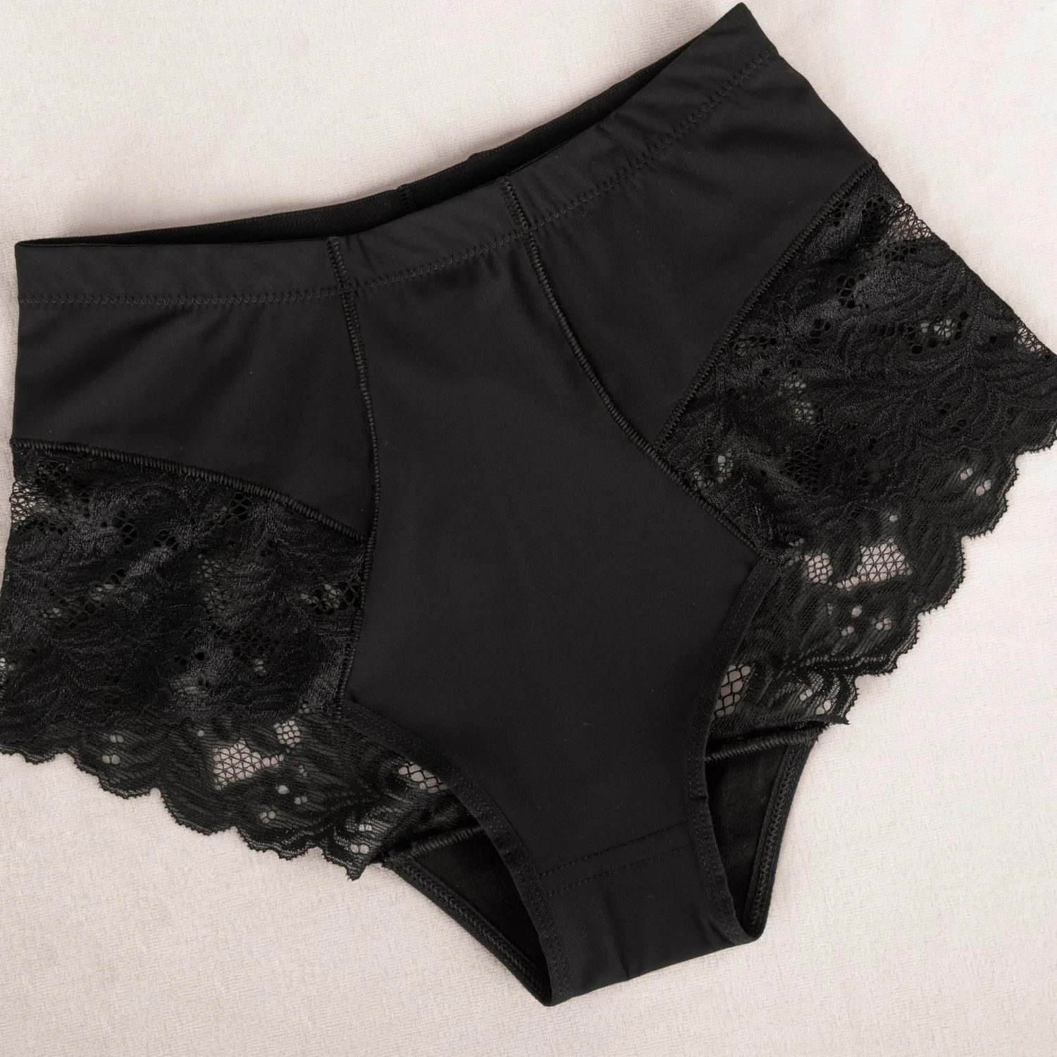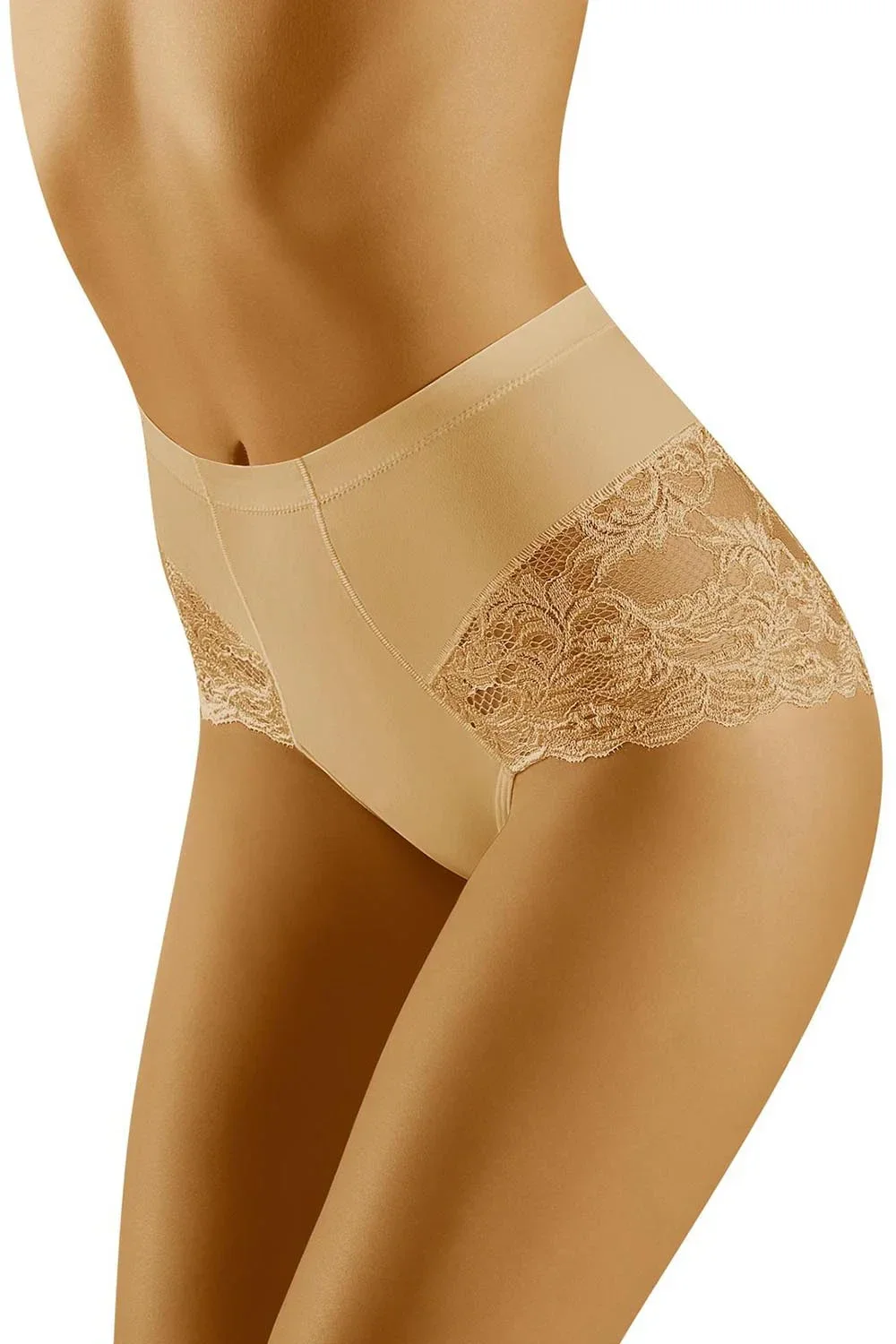 Kalhotky od Wol-Bar. Model Slimea. Výrobek je vyroben z 58 % z polyamidu a 42 % z elastanu. Výrobek pro ženy. Kalhotky vysoko. Modelování oděvů. Výhody produktu: modelování s krajkou.