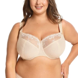Podprsenka Gaia. Model 1027M Eve Maxi. Má dráty, které prsa vhodně tvarují. Svislé velrybí kosti zasazené po stranách. Výrobek má nastavitelné popruhy bez možnosti odepnutí. Kovové háčky na popruh. Podprsenka se zapínáním na háčky a oči. Upevňovací bod: vzadu. Výrobek je vyroben z 56 % z polyamidu, 30 % z polyesteru a 14 % z elastanu. Výrobek pro ženy.