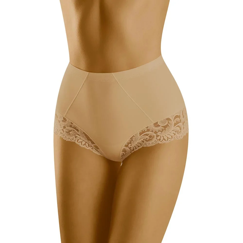 Kalhotky od Wol-Bar. Model Exepta. Výrobek je vyroben z 59 % z polyamidu a 41 % z elastanu. Zeštíhlující spodní prádlo. Modelování oděvů. Výhody produktu: pohodlné komfortní zeštíhlení zplošťující břicho tvarující krajkový vysoký vysoký top. Korekční oděv. Výrobek pro ženy.