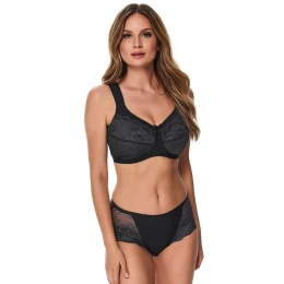 Podprsenka od Kostar. Model 308. Výrobek má nastavitelné popruhy bez možnosti odepnutí. Kovové háčky na popruh. Podprsenka se zapínáním na háčky a oči. Upevňovací bod: vzadu. Výrobek je vyroben ze 60 % z polyamidu, 25 % z bavlny a 15 % z elastanu. Výrobek pro ženy. Výrobek má kapsy na vložky.