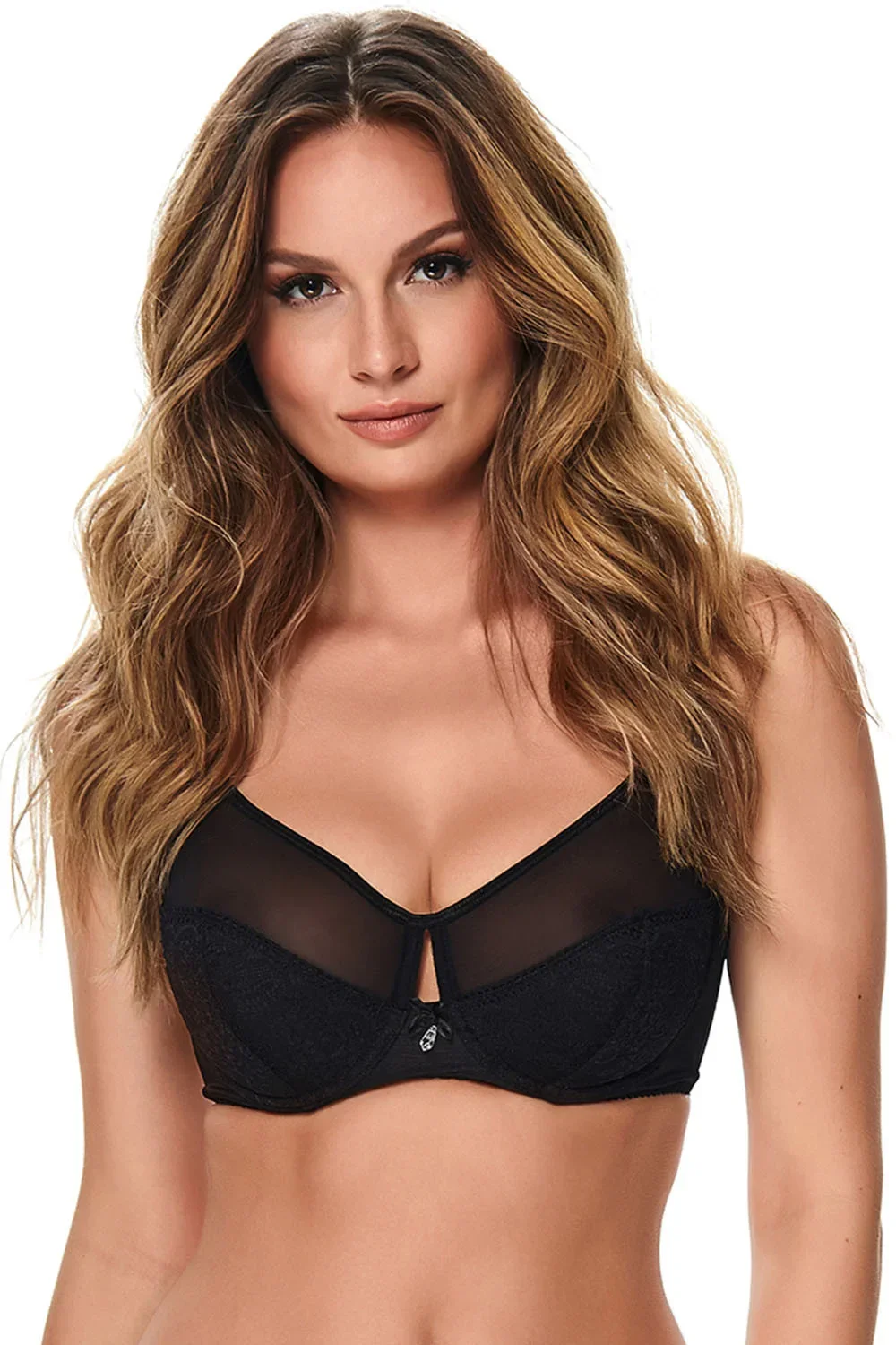 Podprsenka od Kostar. Model 0098. Má dráty, které prsa vhodně tvarují. Svislé velrybí kosti zasazené po stranách. Výrobek má nastavitelné popruhy bez možnosti odepnutí. Kovové háčky na popruh. Podprsenka se zapínáním na háčky a oči. Upevňovací bod: vzadu. Výrobek je vyroben z 85 % z polyamidu a 15 % z elastanu. Výrobek pro ženy.Parametry