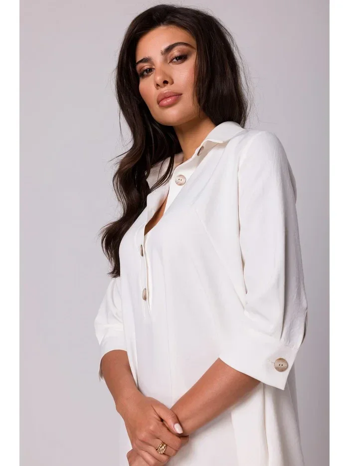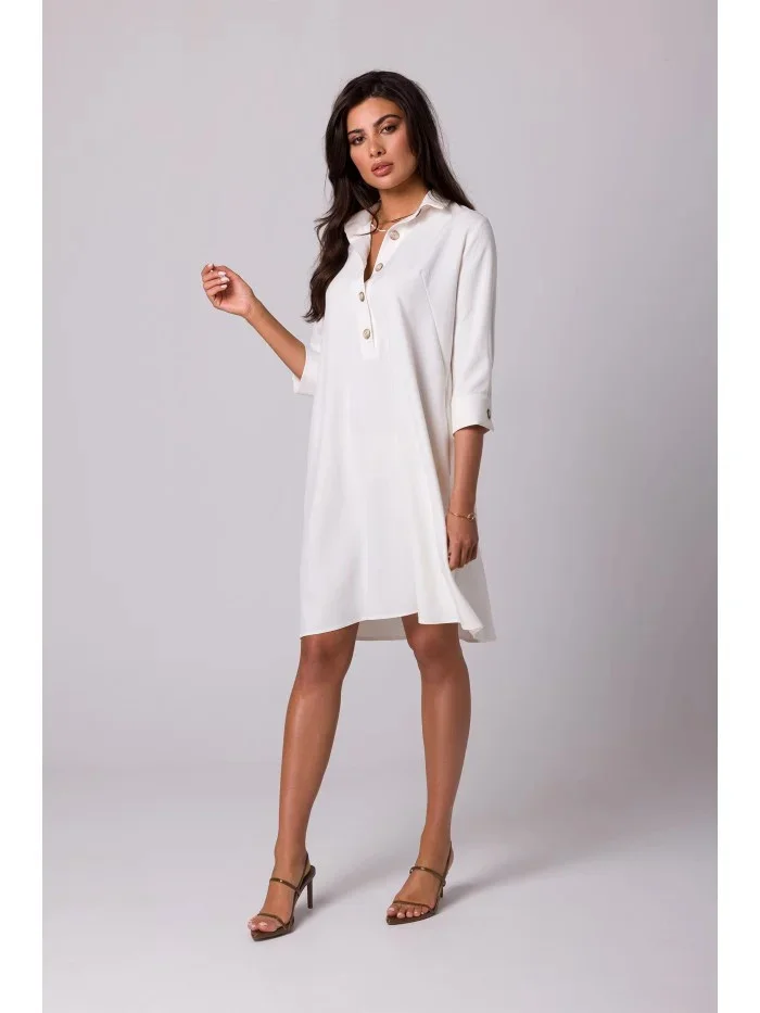 model 18410150 Rozšířené košilové šaty krémové - BeWear