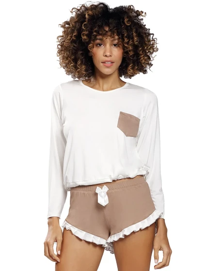 Noční prádlo od Dkaren. Model Ronnie. Výrobek je vyroben z 92 % z viskózy a 8 % z elastanu. Typ výstřihu: kulatý. Výrobek pro ženy. Délka: krátká. Délka rukávu: dlouhý rukáv.