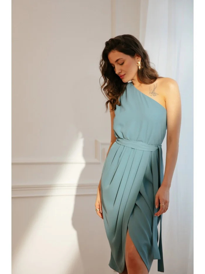model 18428946 Šaty na jedno rameno nebesky modré - Makover