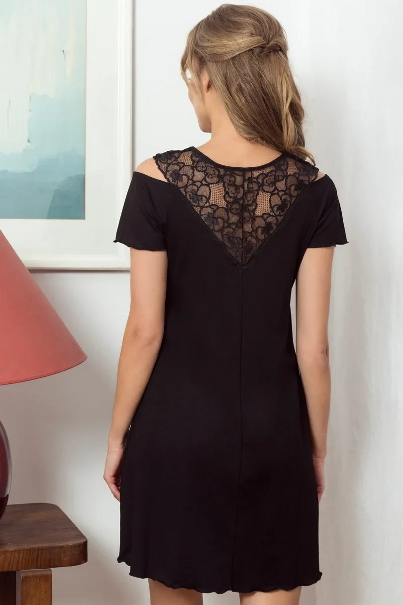 Dámské viskózové tričko s krátkým rukávem. Výstřih a rukávy zdobí krajka.