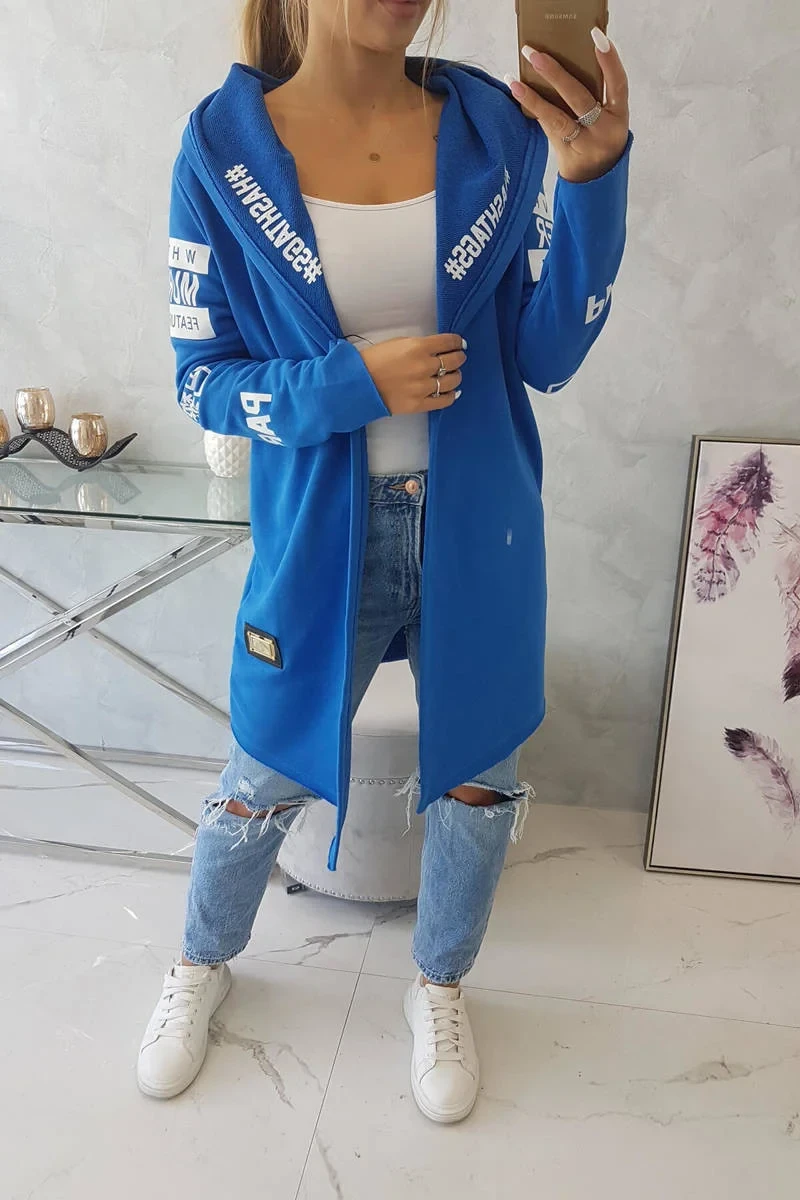 Představujeme vám dlouhou sukni s kapucí s nápisy. Bunda je vyrobena z vysoce kvalitního materiálu. Velikost je univerzální a vyhovuje dámským velikostem S, M a L