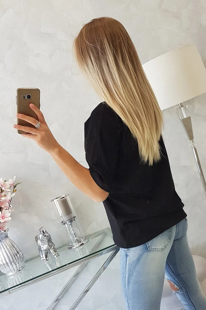 model 18746366 halenka s potiskem černá - K-Fashion