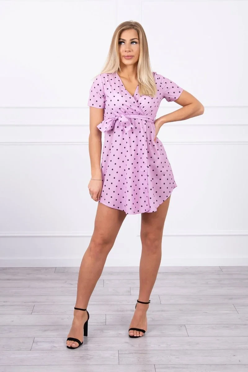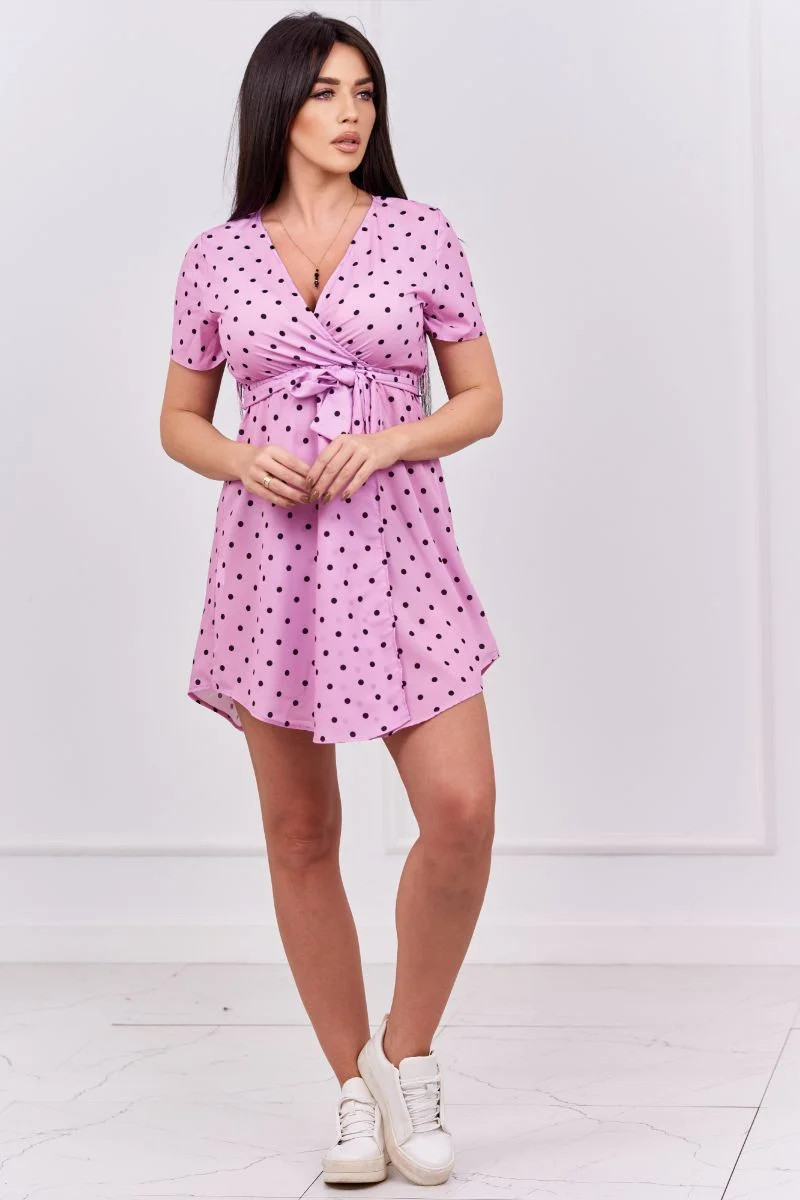 Představujeme vám módní šaty. Šaty mají puntíkovaný vzor. Šaty zavázané v pase. Ideální každodenní poloha. Šaty jsou vyrobeny z vysoce kvalitního materiálu. Velikost je univerzální a vyhovuje dámám, které nosí velikost S, M nebo L.
