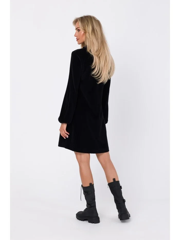 80% bavlna 20% polyester INFORMACE O PRODUKTU: pletenina - samet uvolněný střih Šaty áčkového střihu přetažené přes hlavu výstřih do V dlouhé rukávy zakončené pružným lemem délka nad kolena bez podšívky naše modelka je vysoká 171 cm a nosí velikost S Navrženo a vyrobeno v Polsku