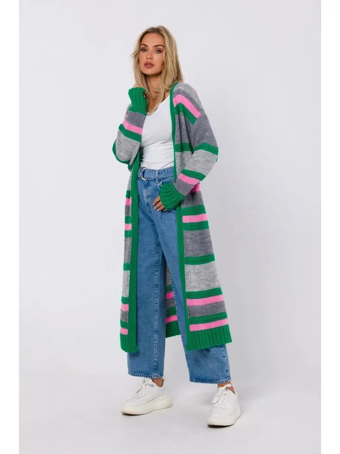 85% akryl 15% nylon INFORMACE O PRODUKTU: těžký úplet volného střihu vícebarevný svetr s otevřenou přední částí spadá pod kolena naše modelka je vysoká 171 cm a nosí velikost S navrženo a vyrobeno v Polsku