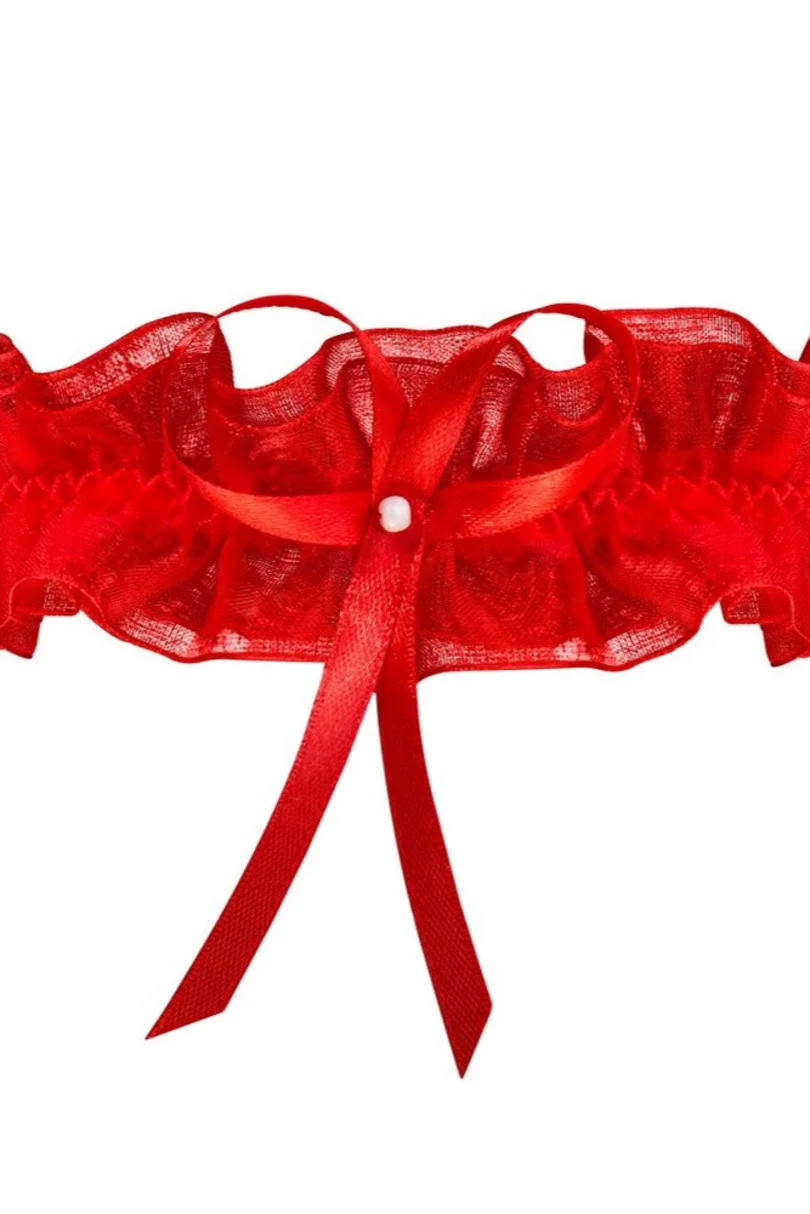 Červený podvazek Monaco je perfektní volbou pro ty, kteří oceňují skromnost a jednoduchost. Je vyrobena ze dvou vrstev jemného tylu a zdobí ji mašlička s malou perlou. Je to model ideální pro studnu i mimo ni.
