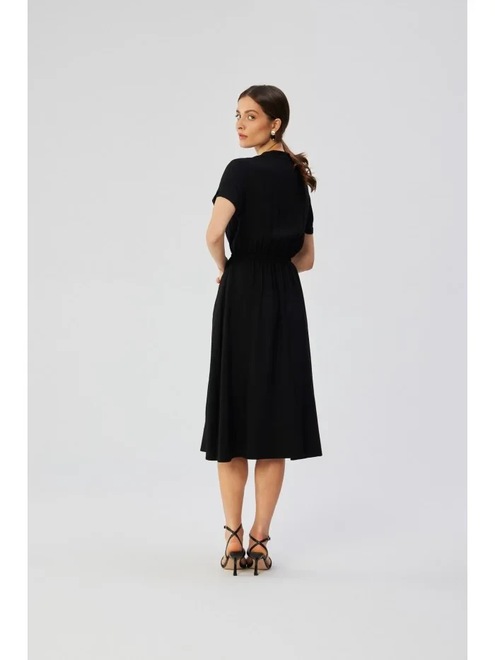 model 19647469 Viskózové šaty se šňůrkou v pase černé - STYLOVE
