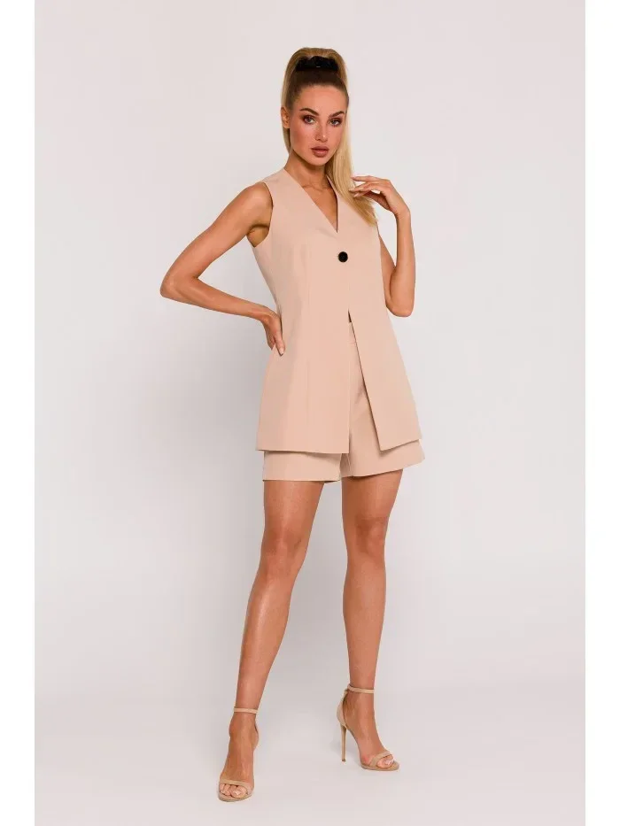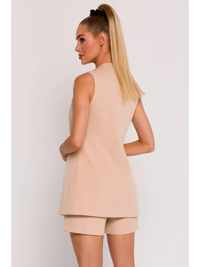 model 19660615 Blejzr bez rukávů s jedním knoflíkem béžový - Moe