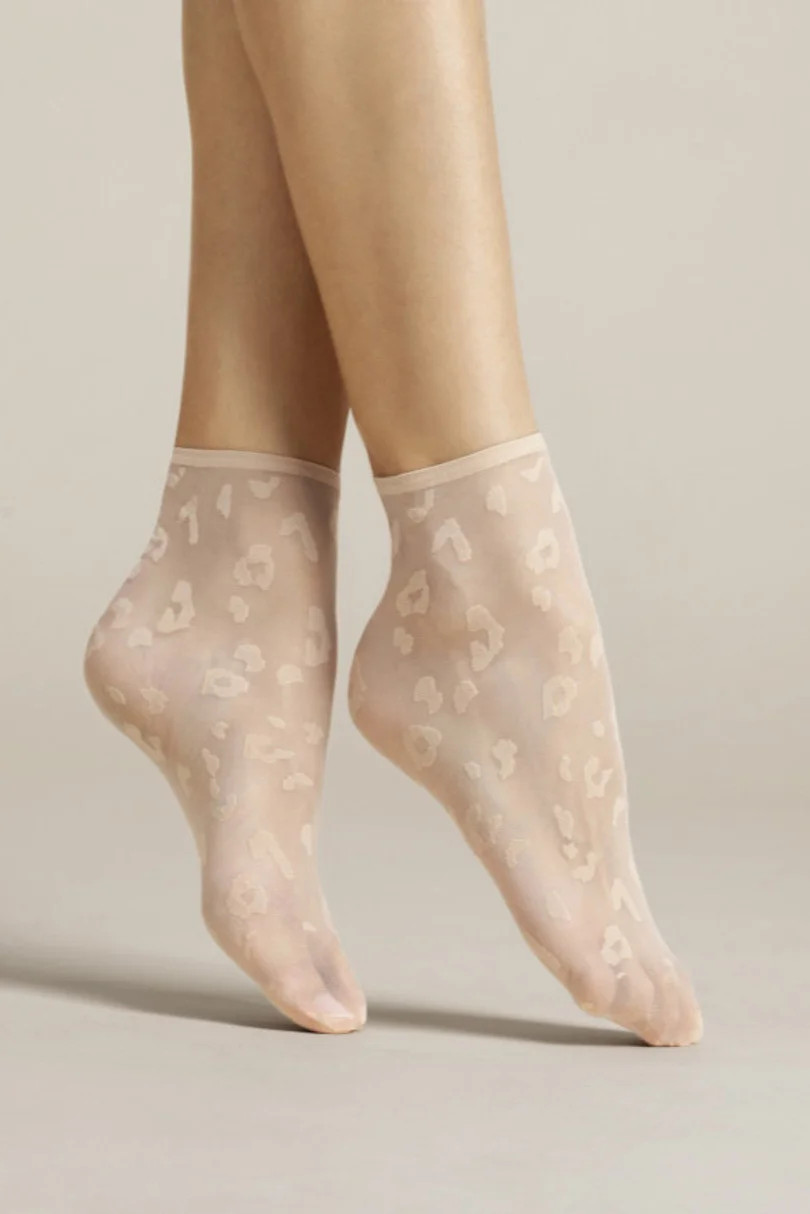 Beztlakové, vzorované, průhledné ponožky s neviditelně zesílenou prstovou částí. Model se dodává ve třech barevných provedeních - černém, bílém a poudre.