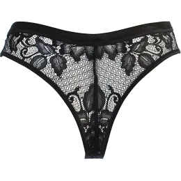 Černé krajkové kalhotky na béžovém tylu vás obklopí jemností materiálu, budete se cítit jako královna a dáte průchod svému sex-appealu, tanga ve stylu brazyliana mají vzadu zabudovanou krajku, takže se elegance prolíná s pohodlím, spolu s podprsenkou V-10771 vytvoří krásný komplet, ve kterém budete nadšená.