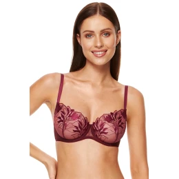 Biustonosz marki Gorteks. Model Coco/B2. Posiada druty, które podpierają piersi odpowiednio je kształtując. Fiszbiny pionowe osadzone na bokach. Produkt posiada regulowane ramiączka bez możliwości ich odpięcia. Haczyki do ramiączek metalowe. Biustonosz zapinany na haftki. Miejsce zapięcia: tył. Dwa rzędy haftek pionowych. Trzy stopnie haftek poziomych. Produkt został wykonany z 70% poliamid, 25% poliester, 5% elastan. Produkt damski.