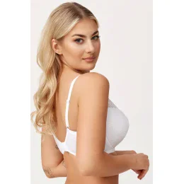 Biustonosz marki Azal. Model Wera. Posiada druty, które podpierają piersi odpowiednio je kształtując. Haczyki do ramiączek metalowe. Biustonosz zapinany na haftki. Miejsce zapięcia: tył. Dwa rzędy haftek pionowych. Trzy stopnie haftek poziomych. Produkt został wykonany z 88% poliamid, 8% bawełna, 4% elastan. Produkt damski.