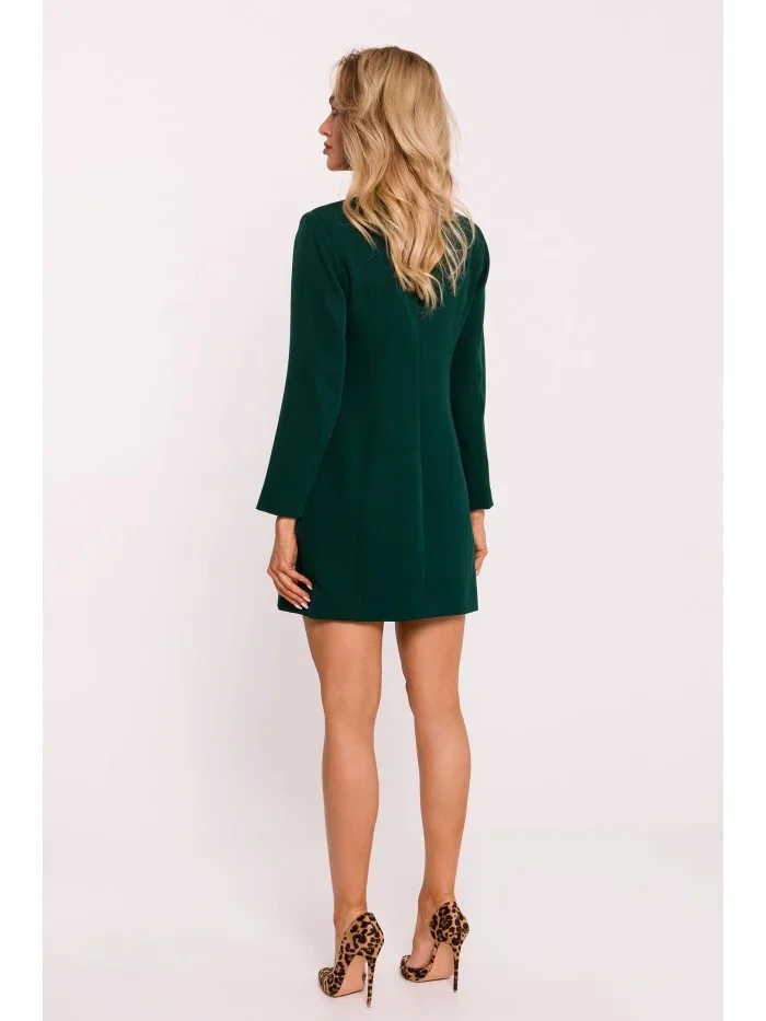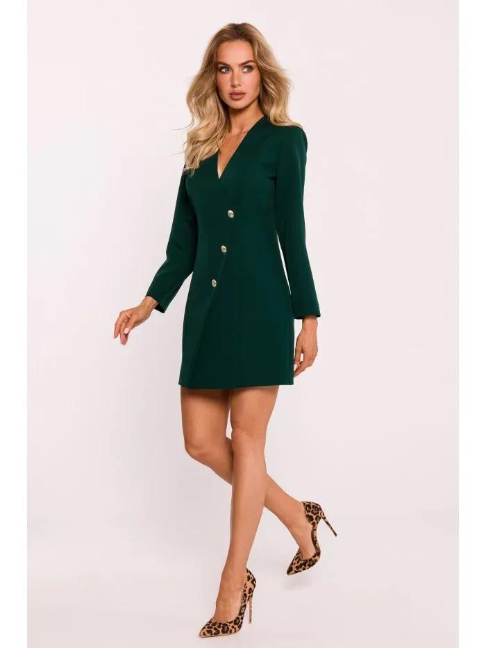 95% polyester 5% elastan INFORMACE O PRODUKTU: tkaná látka blejzrové šaty s límečkem regular fit dlouhý rukáv pevné ozdobné zlaté knoflíky vpředu délka nad kolena skrytý zip na zádech bez podšívky naše modelka je vysoká 171 cm a nosí velikost S navrženo a vyrobeno v Polsku