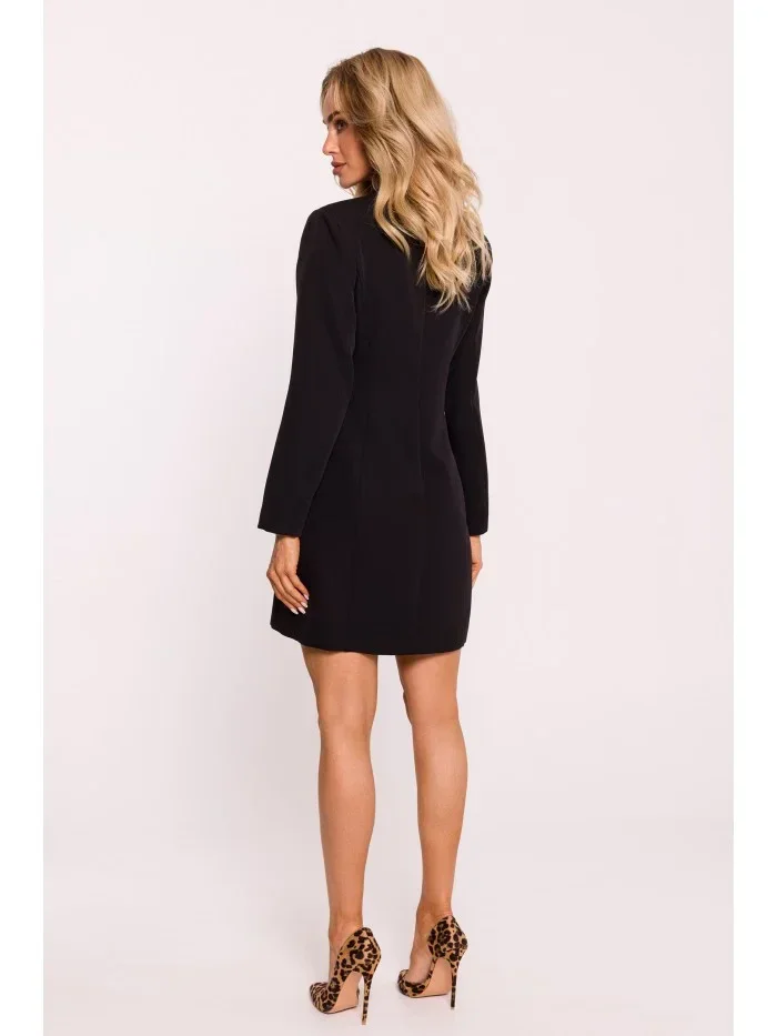 95% polyester 5% elastan INFORMACE O PRODUKTU: tkaná látka blejzrové šaty s límečkem regular fit dlouhý rukáv pevné ozdobné zlaté knoflíky vpředu délka nad kolena skrytý zip na zádech bez podšívky naše modelka je vysoká 171 cm a nosí velikost S navrženo a vyrobeno v Polsku