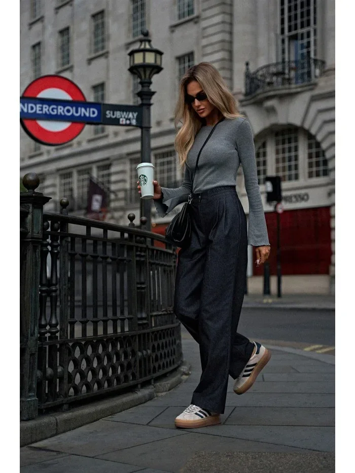 model 20475983 Kalhoty se širokými nohavicemi grafitové - Moe