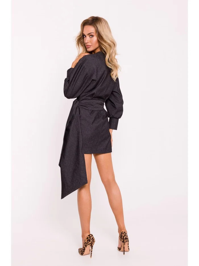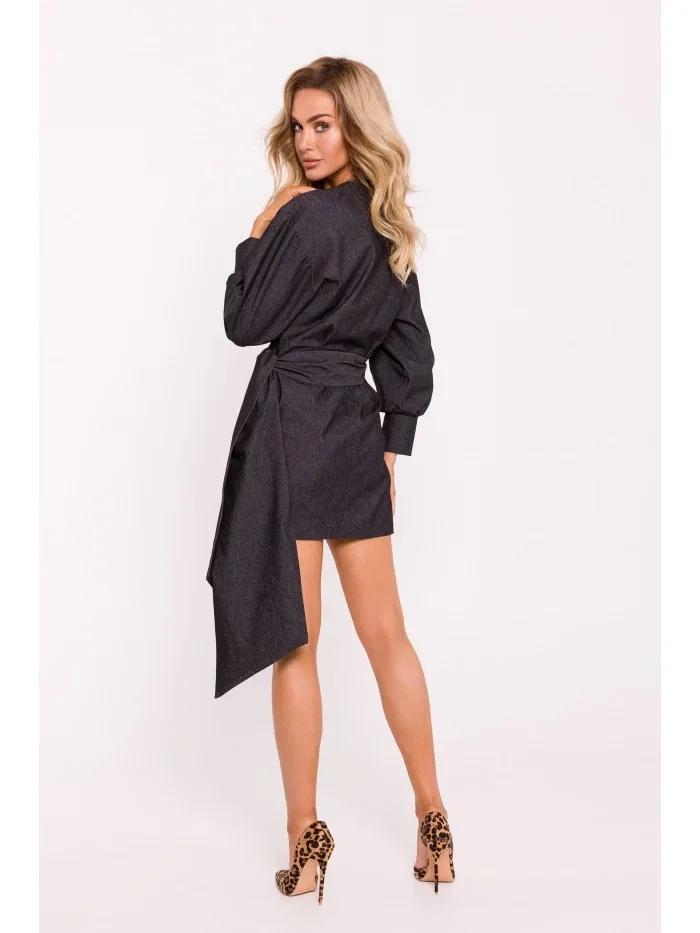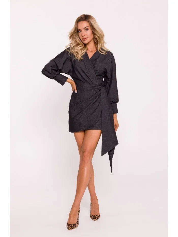 model 20476034 Mini zavinovací šaty s vázáním grafitové - Moe