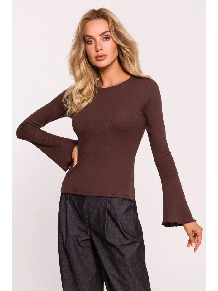 model 20476100 Žebrovaný top s dlouhými rukávy hnědý - Moe