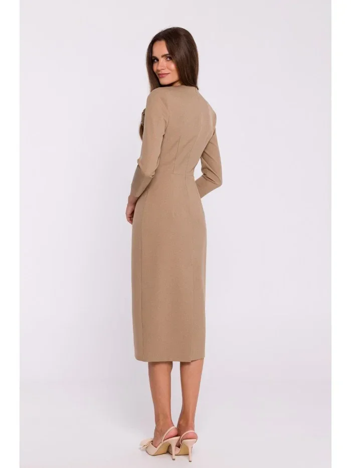 97% polyester 3% elastan DETAILY PRODUKTU: tkaná látka pouzdrové šaty střední délky s výstřihem do V střih na míru skrytý boční zip podšité ozdobná odnímatelná květina naše modelka je vysoká 174 cm a nosí velikost S navrženo a vyrobeno v Polsku