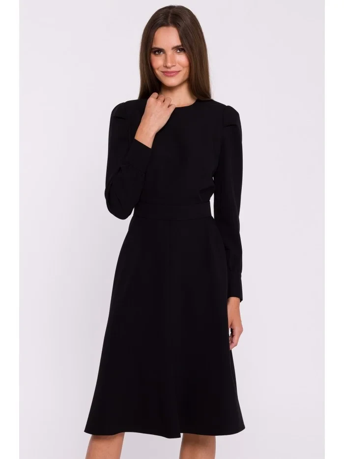 model 20503140 Rozšířené šaty s páskem černé - STYLOVE