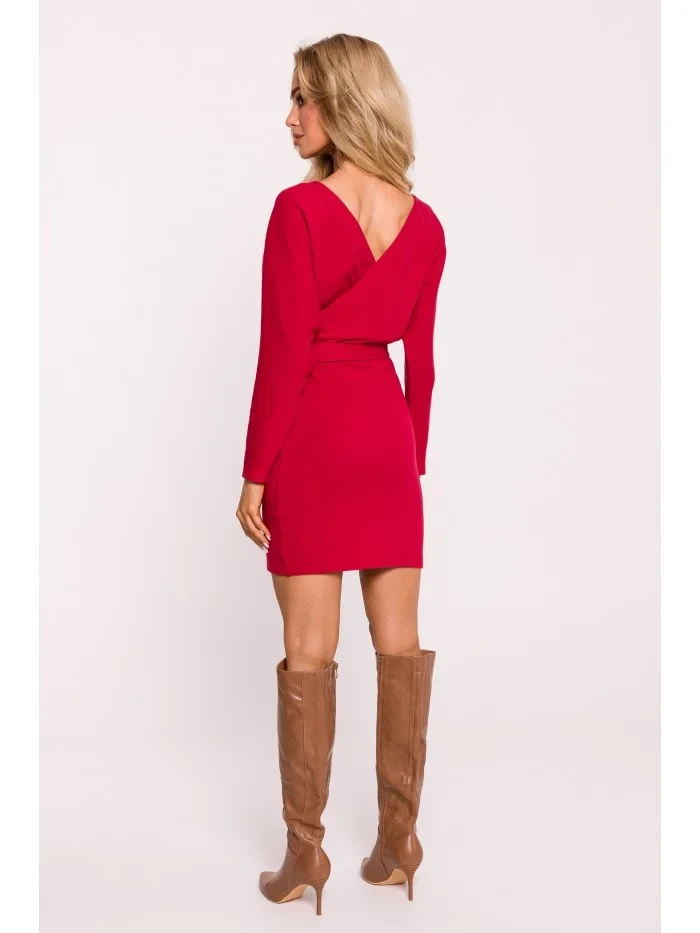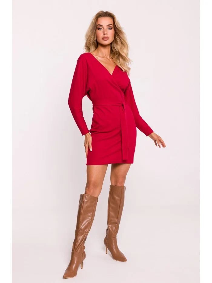 model 20515120 Zavinovací šaty z žebrovaného úpletu červené - Moe