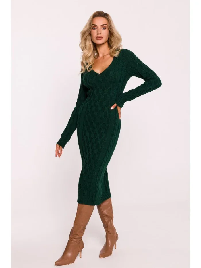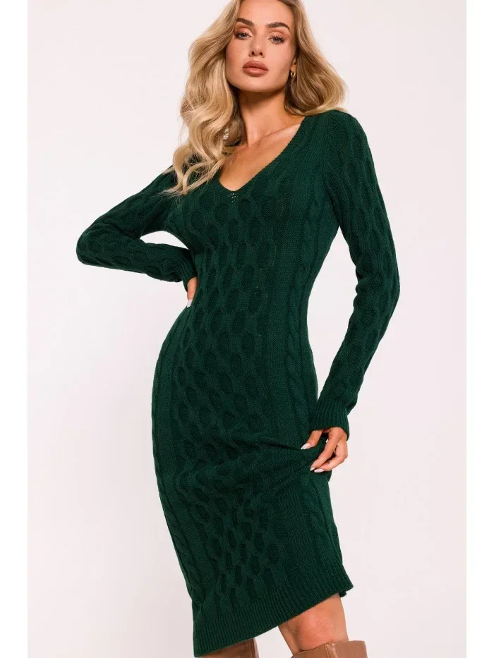 model 20515182 Svetrové šaty s výstřihem do V zelené - Moe