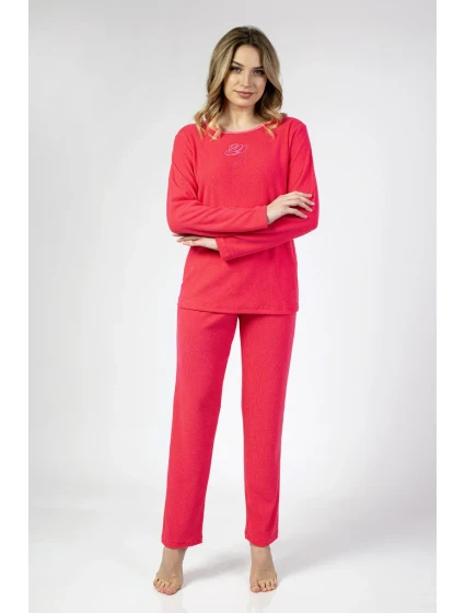 Dámské pyžamo s dlouhými rukávy z froté s kulatým výstřihem a kalhotami s rovnými nohavicemi.