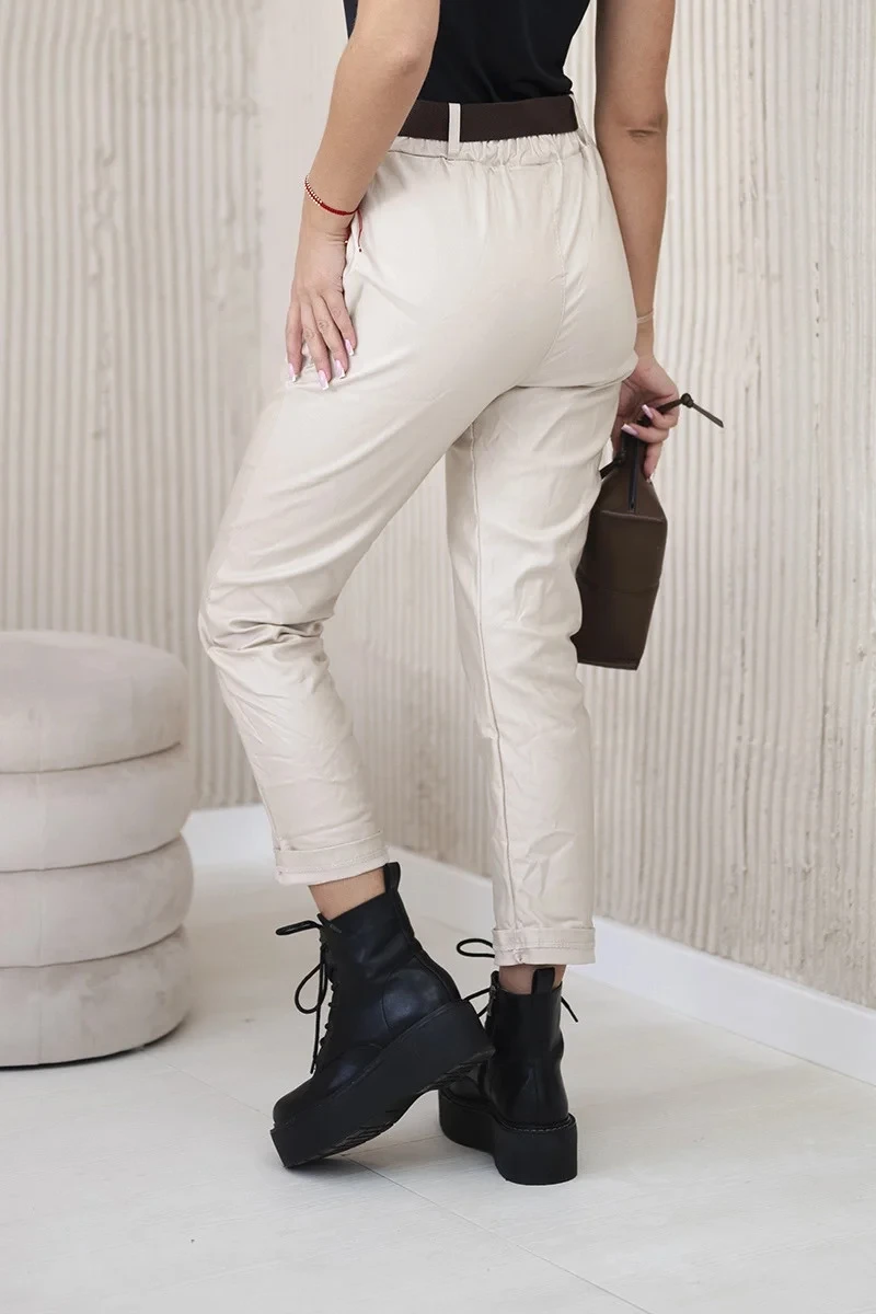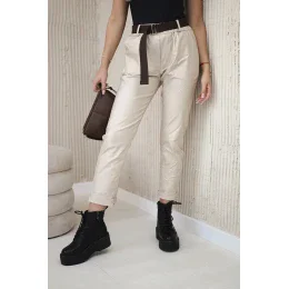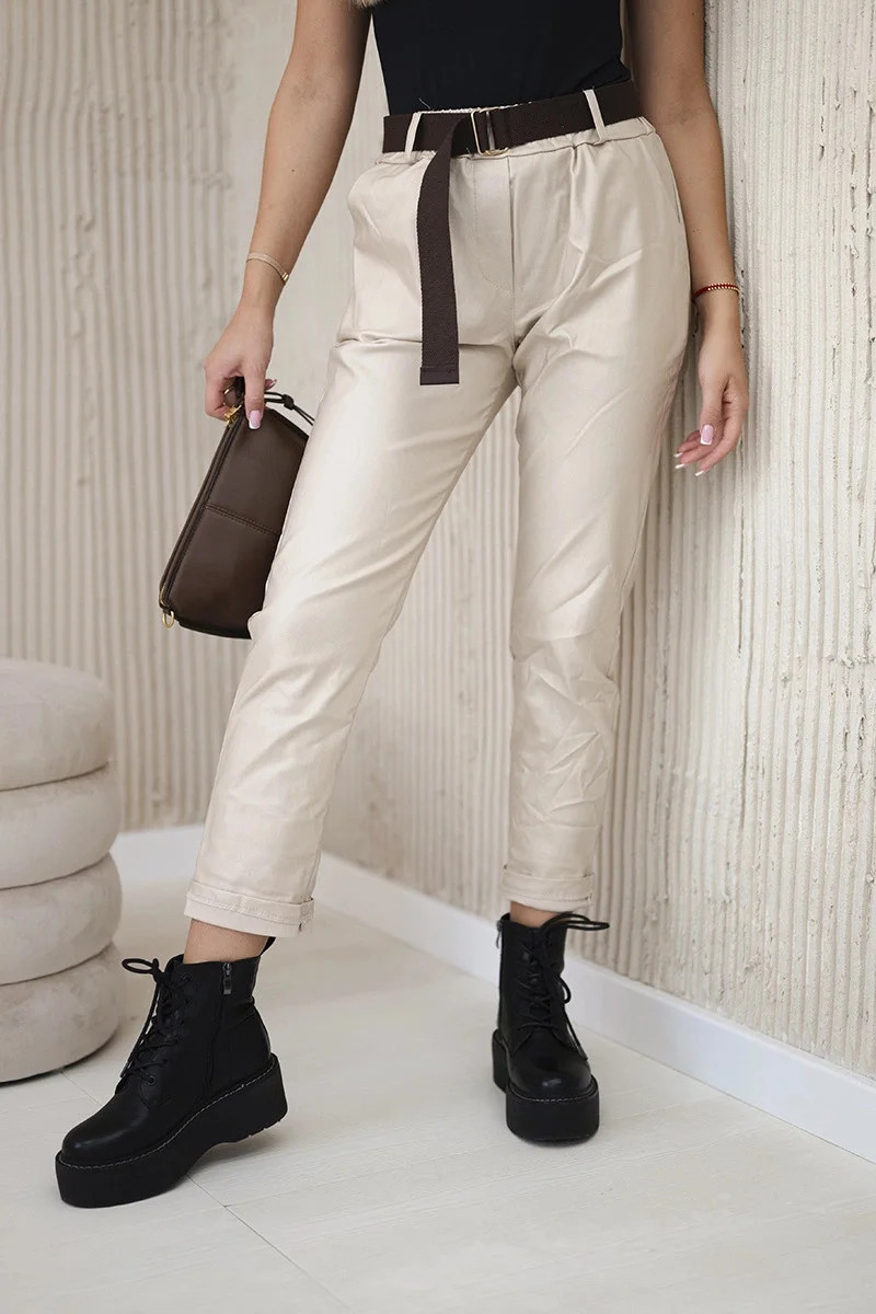 model 20553438 kalhoty s páskem béžový - K-Fashion