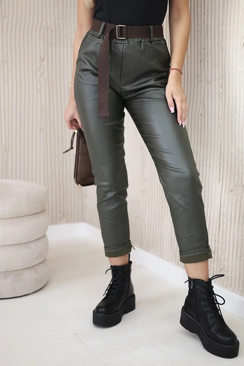 model 20553448 kalhoty s páskem khaki - K-Fashion
