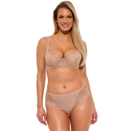 Biustonosz marki Gaia. Model 1263 Elin. Posiada druty, które podpierają piersi odpowiednio je kształtując. Fiszbiny pionowe osadzone na bokach. Produkt posiada regulowane ramiączka bez możliwości ich odpięcia. Biustonosz zapinany na haftki. Miejsce zapięcia: tył. Dwa rzędy haftek pionowych. Trzy stopnie haftek poziomych. Produkt został wykonany z 61% poliamid, 14% bawełna, 12% elastan, 10% poliester, 3% poliuretan. Produkt damski.