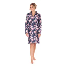 Elegantní dámský župan s romantickým květinovým vzorem kde jemné růžové tóny příjemně kontrastují s barvou temné noční oblohy.