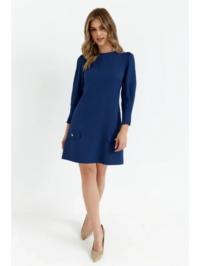model 20589701 Trapézové šaty tmavě modré - Makover