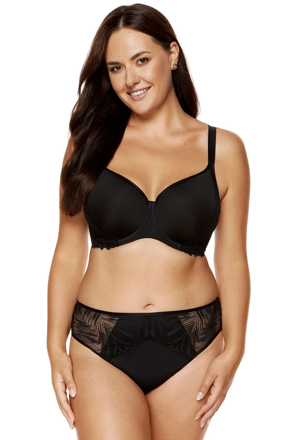 Biustonosz marki Gorteks. Model Eclipse/B5. Posiada druty, które podpierają piersi odpowiednio je kształtując. Produkt posiada regulowane ramiączka bez możliwości ich odpięcia. Haczyki do ramiączek metalowe. Biustonosz zapinany na haftki. Miejsce zapięcia: tył. Produkt został wykonany z 70% poliamid, 25% poliester, 5% elastan. Produkt damski.
