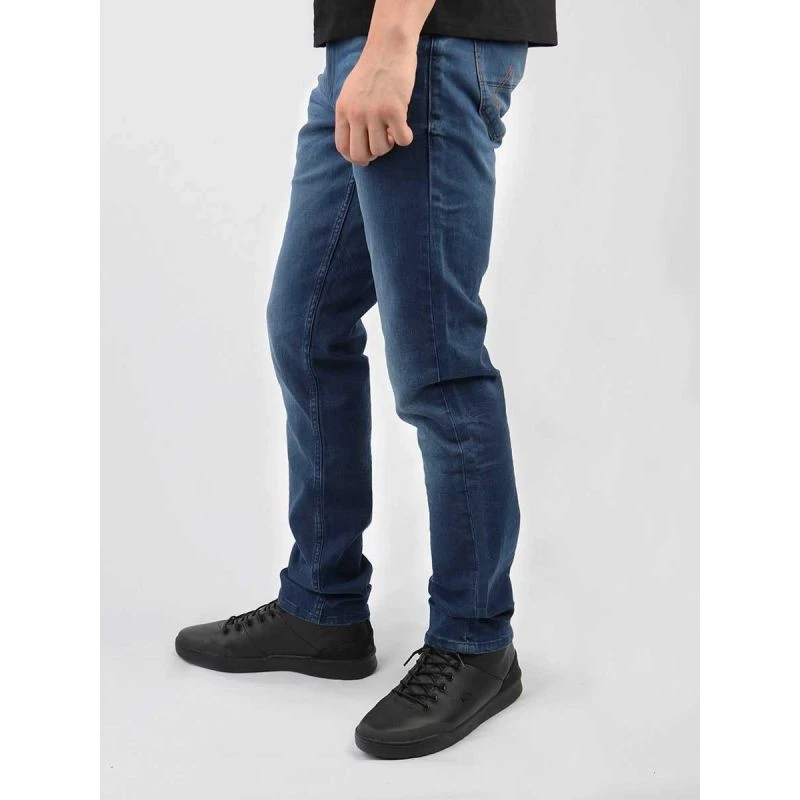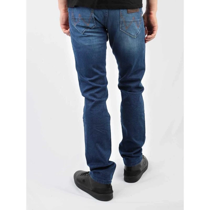 Pánské džínové kalhoty regular fit s rovnými nohavicemi, zapínání na zip, nášivka s logem výrobce na zadní kapse.