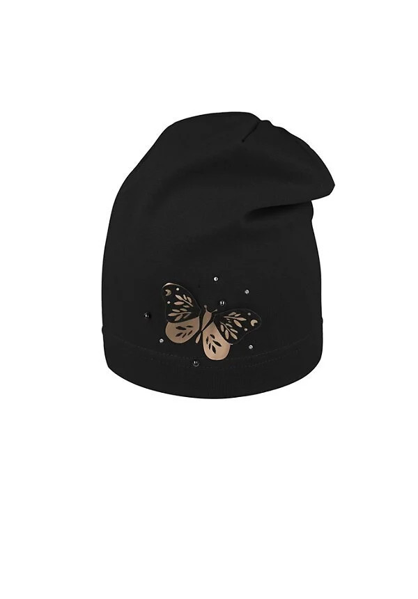 - čepice zdobená aplikací motýla