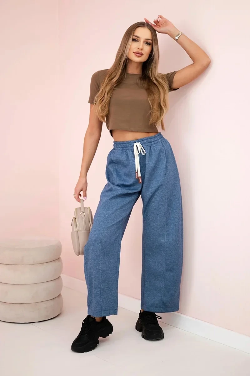 model 20934392 kalhoty zavazované v pase džínový melír - K-Fashion
