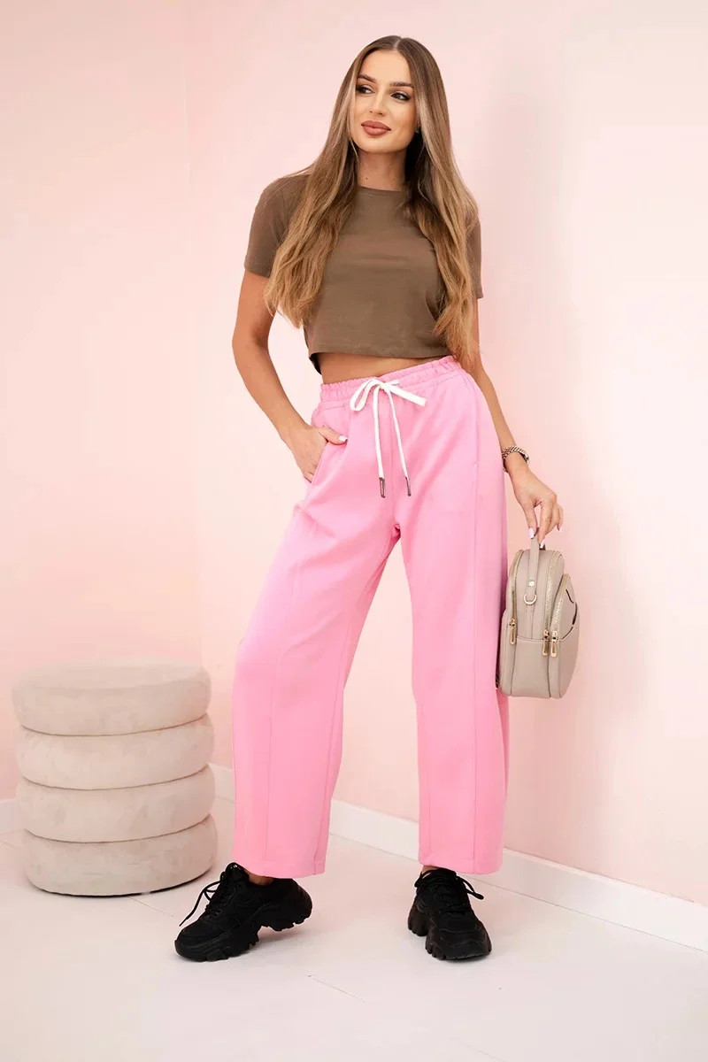 model 20934394 kalhoty zavazované v pase růžový - K-Fashion