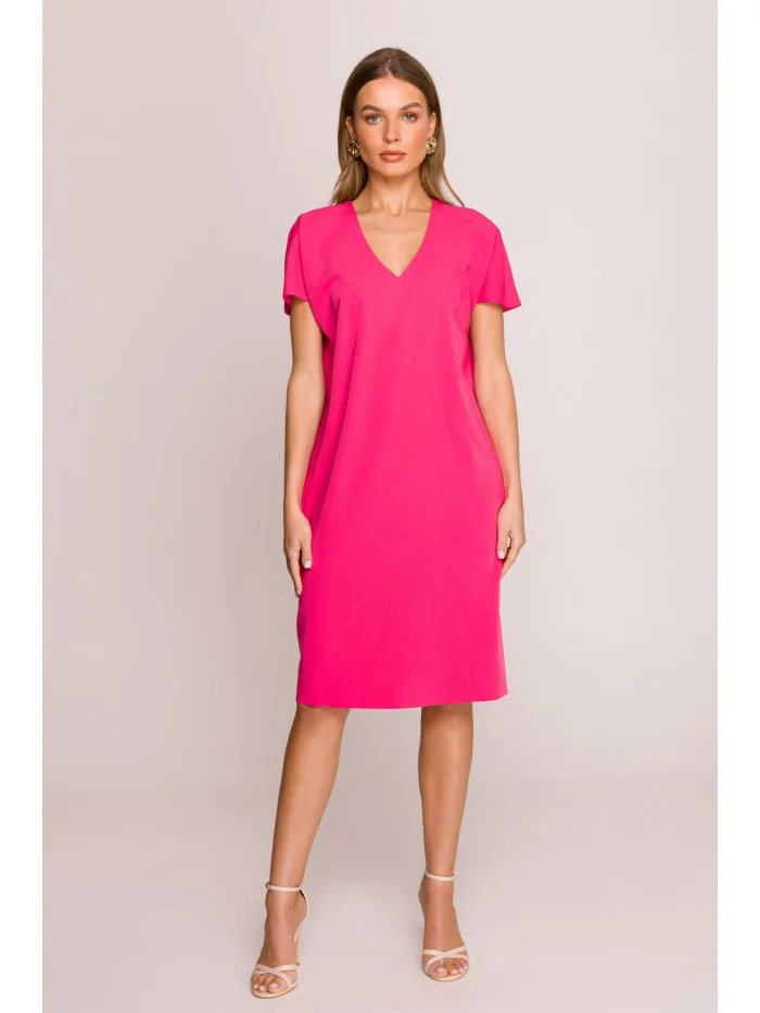 model 20966038 Šaty uvolněného střihu s výstřihem do V růžové - STYLOVE