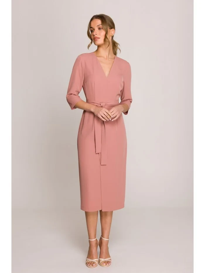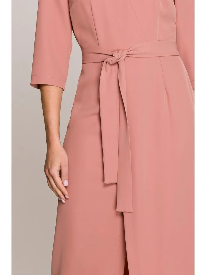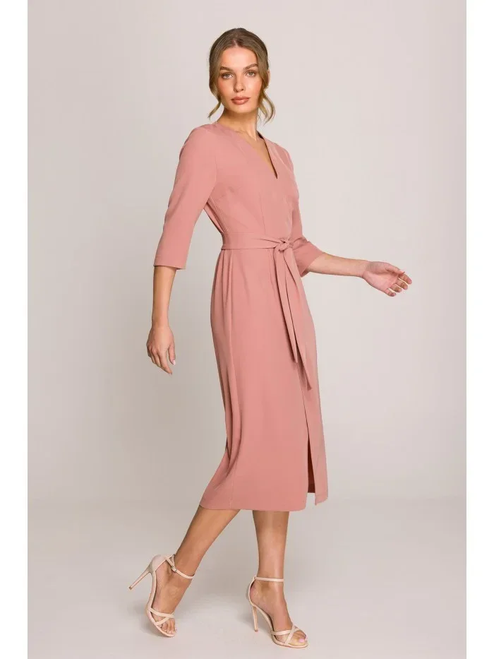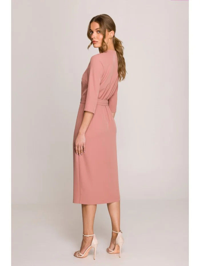 model 20966187 Šaty se zavinovacími detaily ve střední délce růžové - STYLOVE
