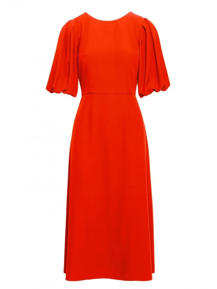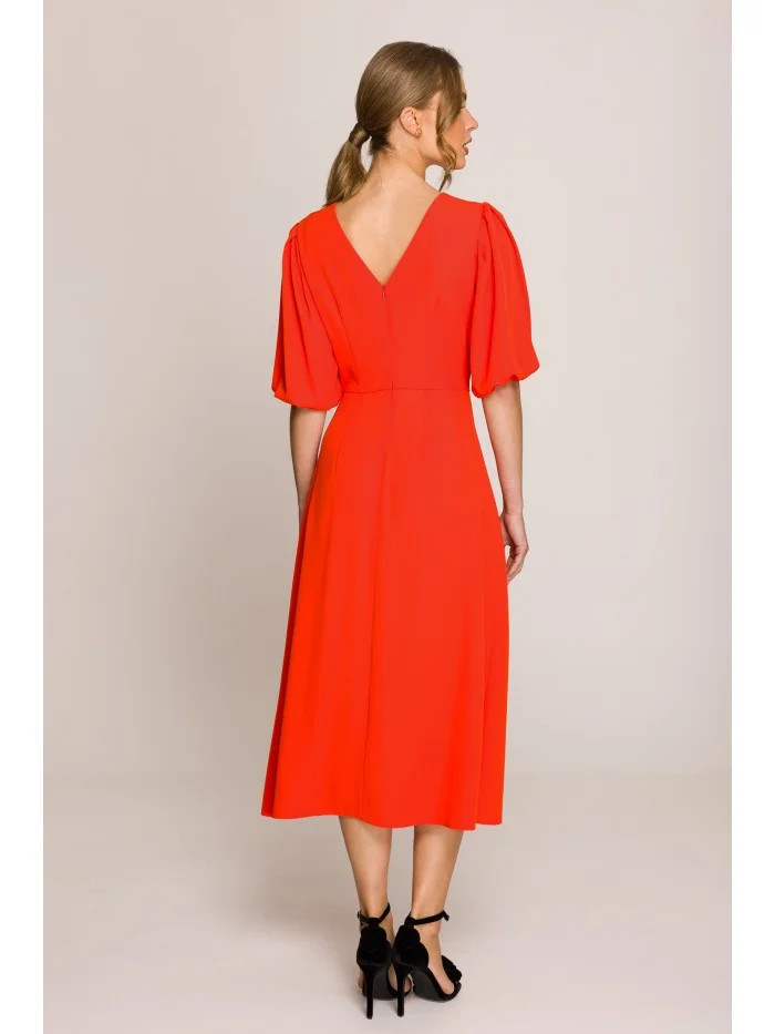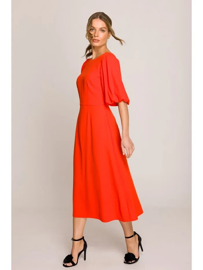 model 20966259 Šaty s puff rukávy korálová barva - STYLOVE