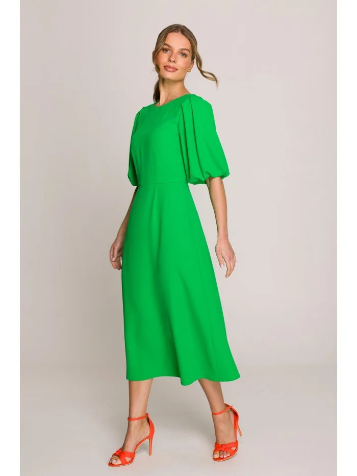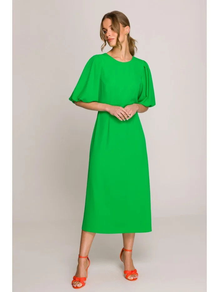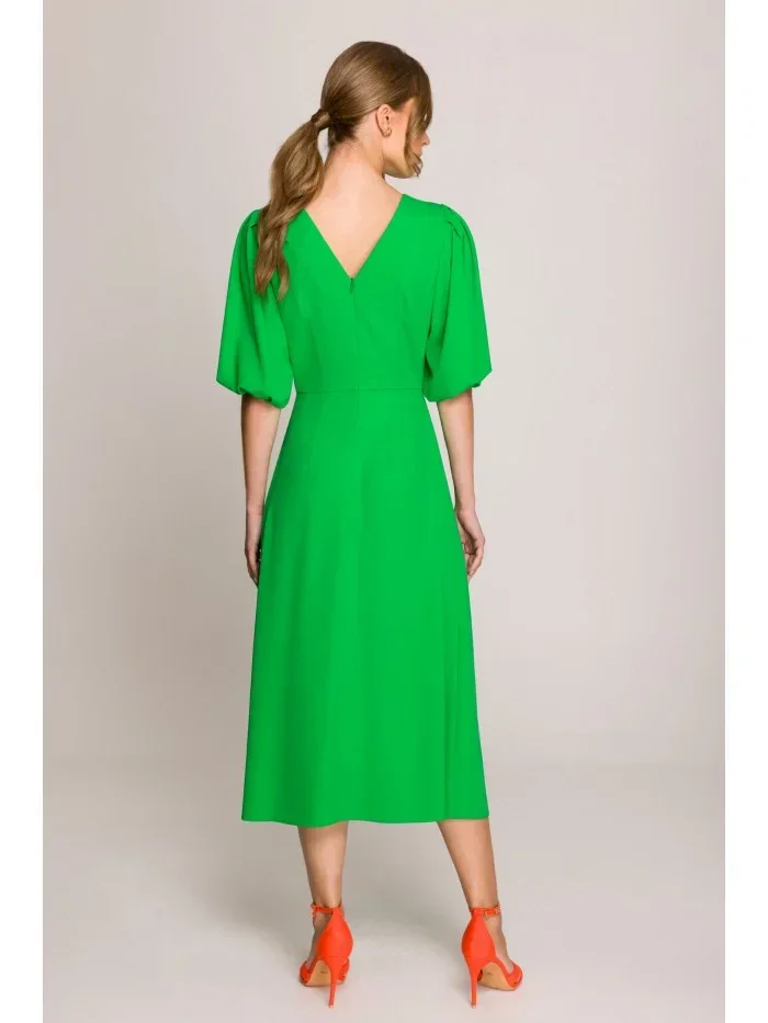 model 20966284 Šaty s puff rukávy zelené - STYLOVE
