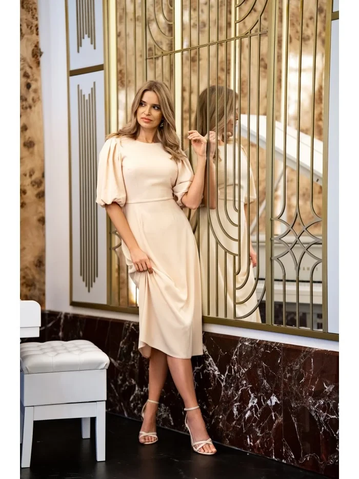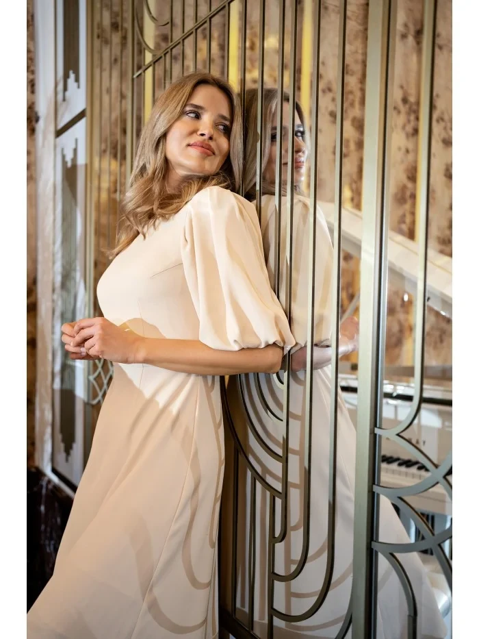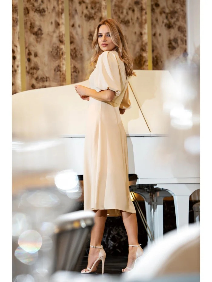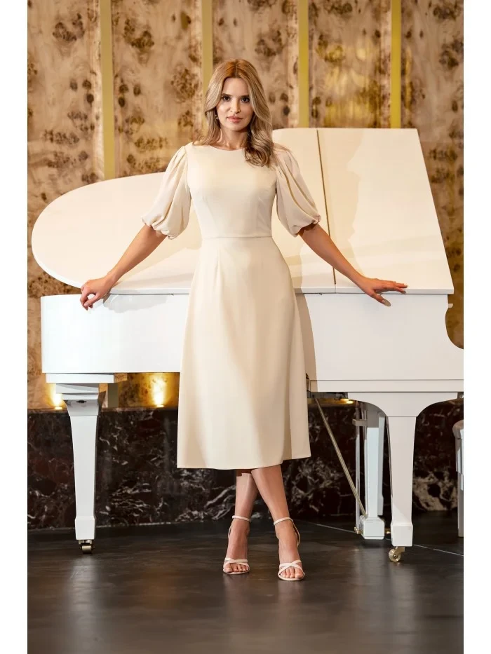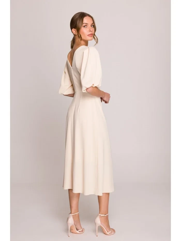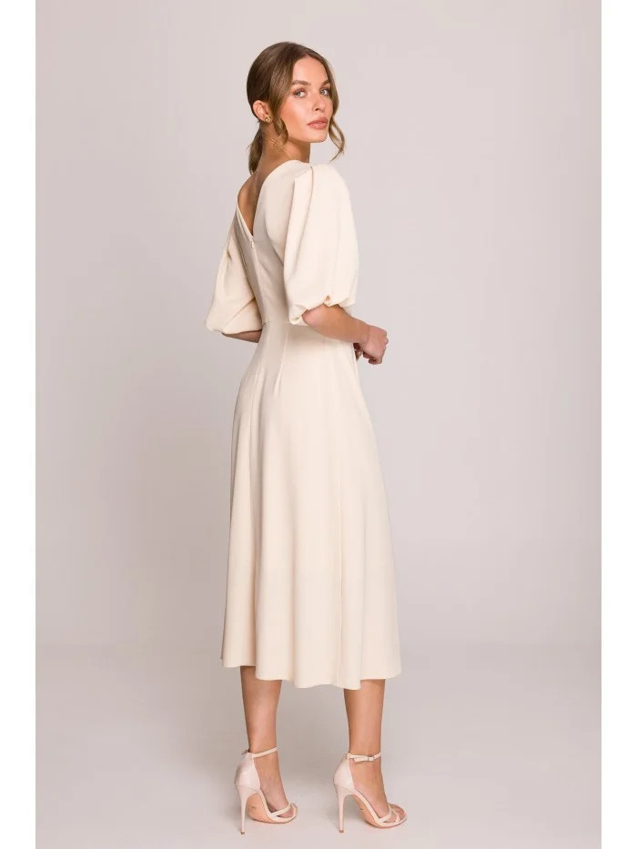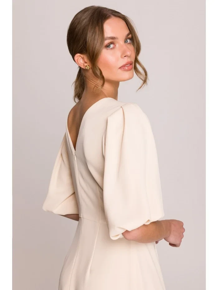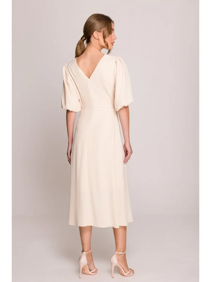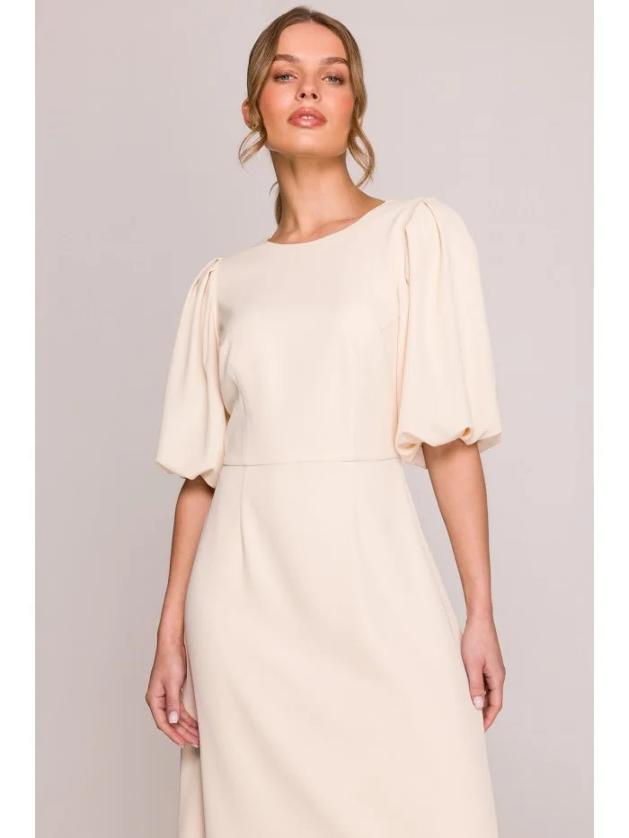 model 20966289 Šaty s puff rukávy krémové - STYLOVE