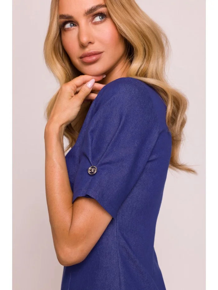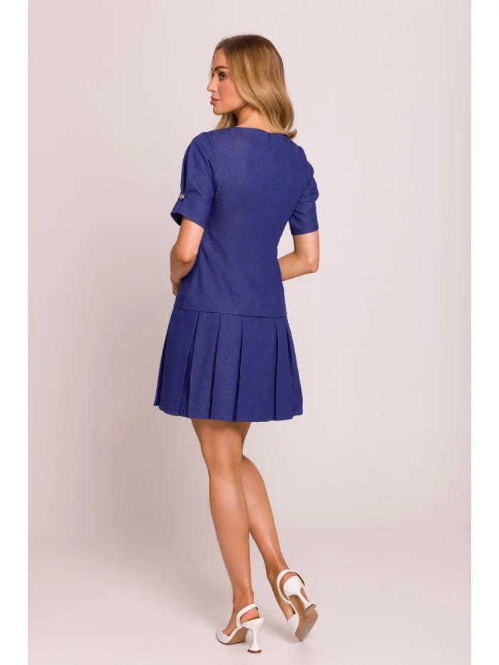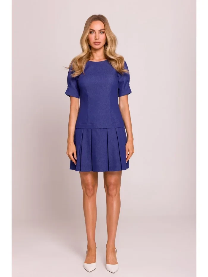 model 20970485 Džínové šaty se záhyby modré - Moe
