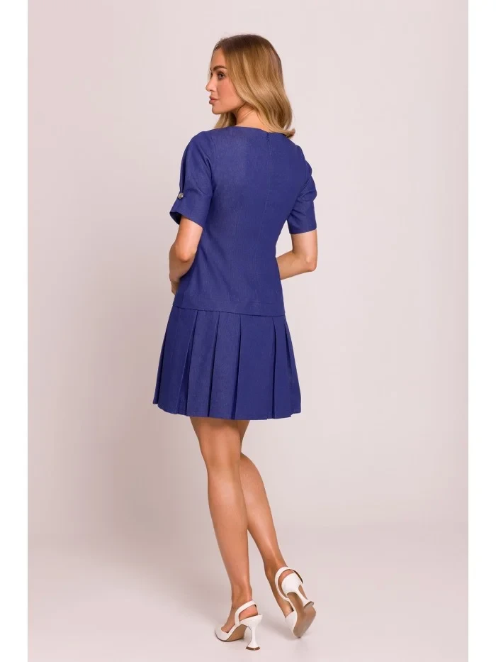 76% bavlna 21% polyester 3% elastan INFORMACE O PRODUKTU: elastická bavlněná směs tkaná látka mini šaty spadlý pas skládaný spodní lem krátké rukávy s ozdobnými knoflíky skryté zapínání na zip bez podšívky naše modelka měří 171 cm a nosí velikost S navrženo a vyrobeno v Polsku