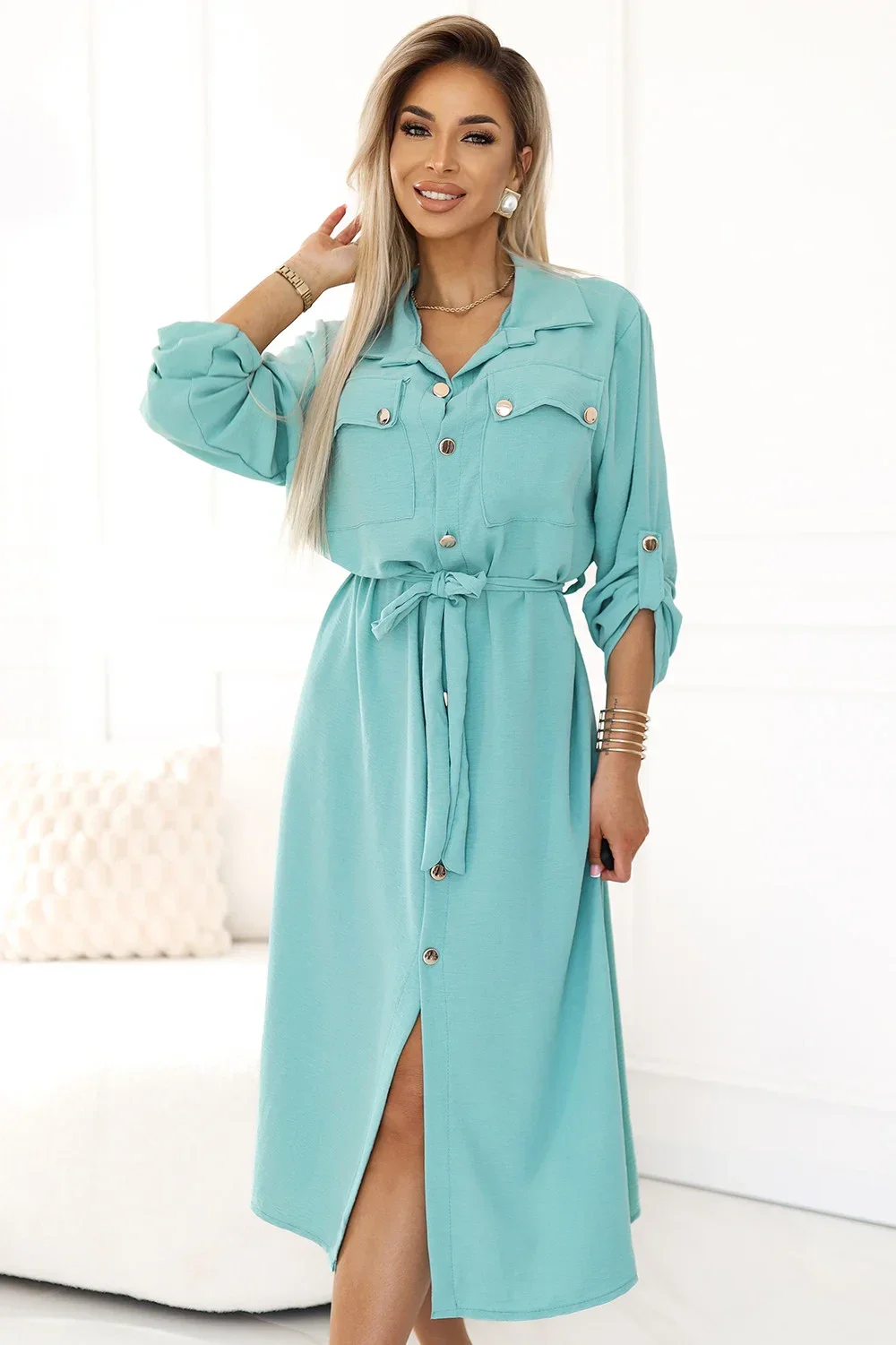 stylová mátová barva dodává šatům svěžest a jemnou eleganci.