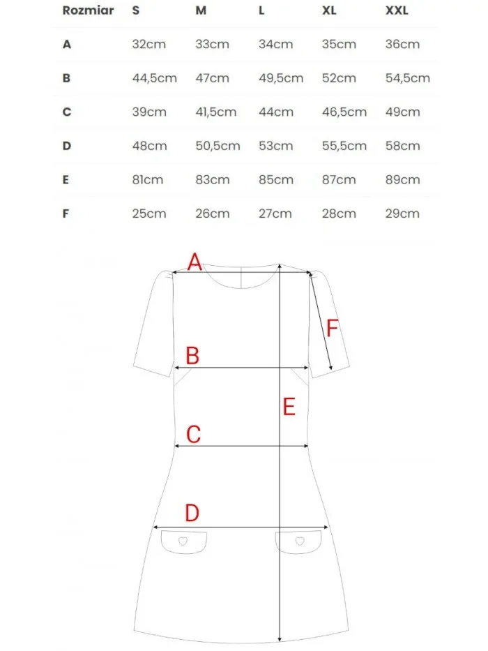 70 % polyester 27 % rayon 3 % spandex INFORMACE O PRODUKTU: tkaná látka mini trapézové šaty krátké obláčkové rukávy ozdobné klopy vpředu s knoflíky ve tvaru srdce skrytý zadní zip bez podšívky naše modelka je vysoká 171 cm a nosí velikost S navrženo a vyrobeno v Polsku